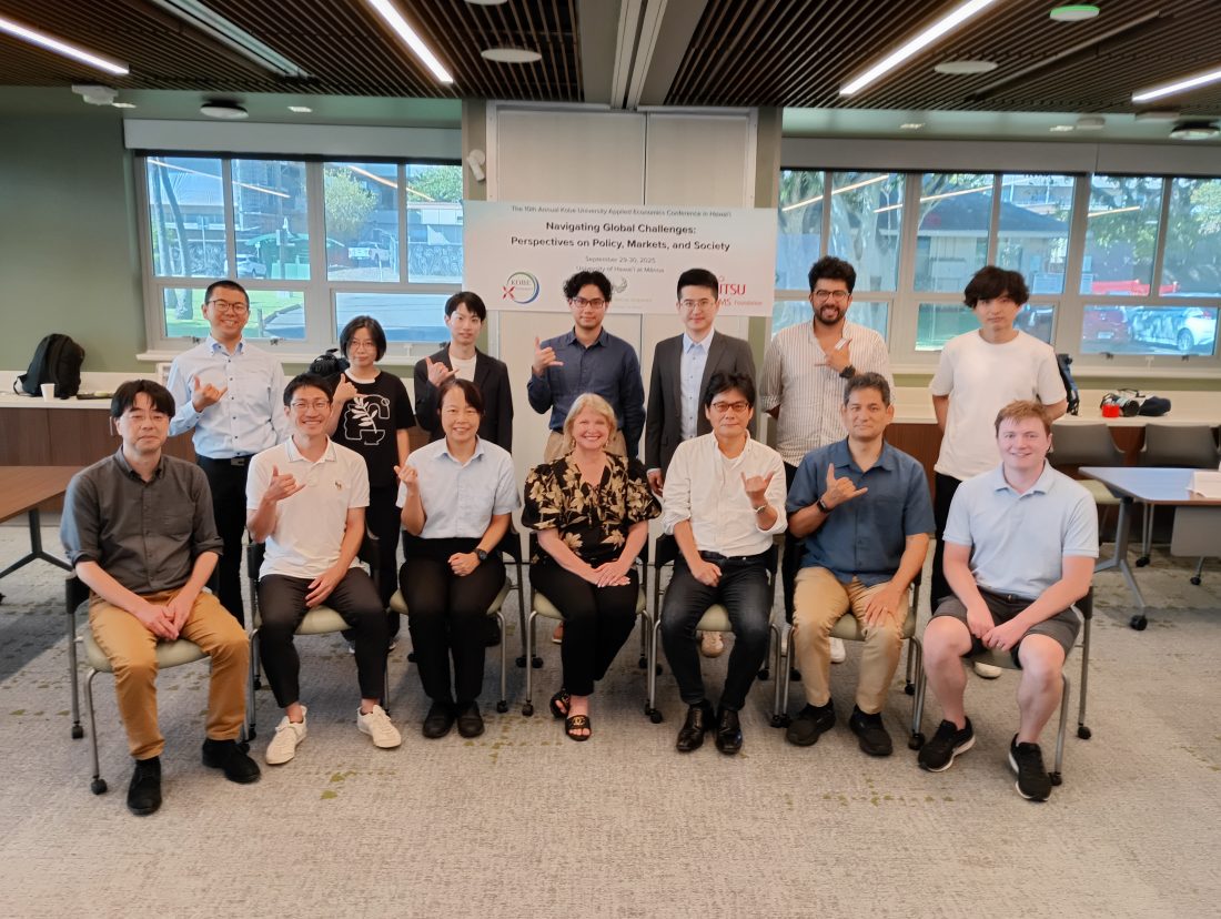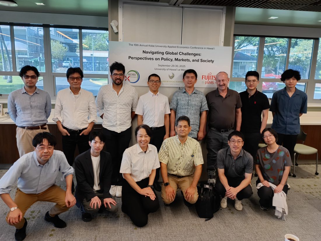 今年はハワイ大学マノア校にて、同校College of Social Sciencesとの共催で開催されました。樽井礼教授をはじめとする同校関係者の尽力により、会場運営や懇親の場も円滑に進められました。「Navigating Global Challenges: Perspectives on Policy, Markets, and Society」をテーマに掲げ、これまでの経済学にとどまらず、法学・経営学を含む幅広い社会科学分野を対象としました。神戸大学・ハワイ大学マノア校(アメリカ)、国立台湾大学(台湾)、南洋理工大学(シンガポール)の研究者が参加し、多様なトピックについて活発な議論が交わされました。さらに今回は新たな試みとして、大学院生によるジュニアセッションも開催され、若手研究者の国際舞台での発表機会が実現しました。